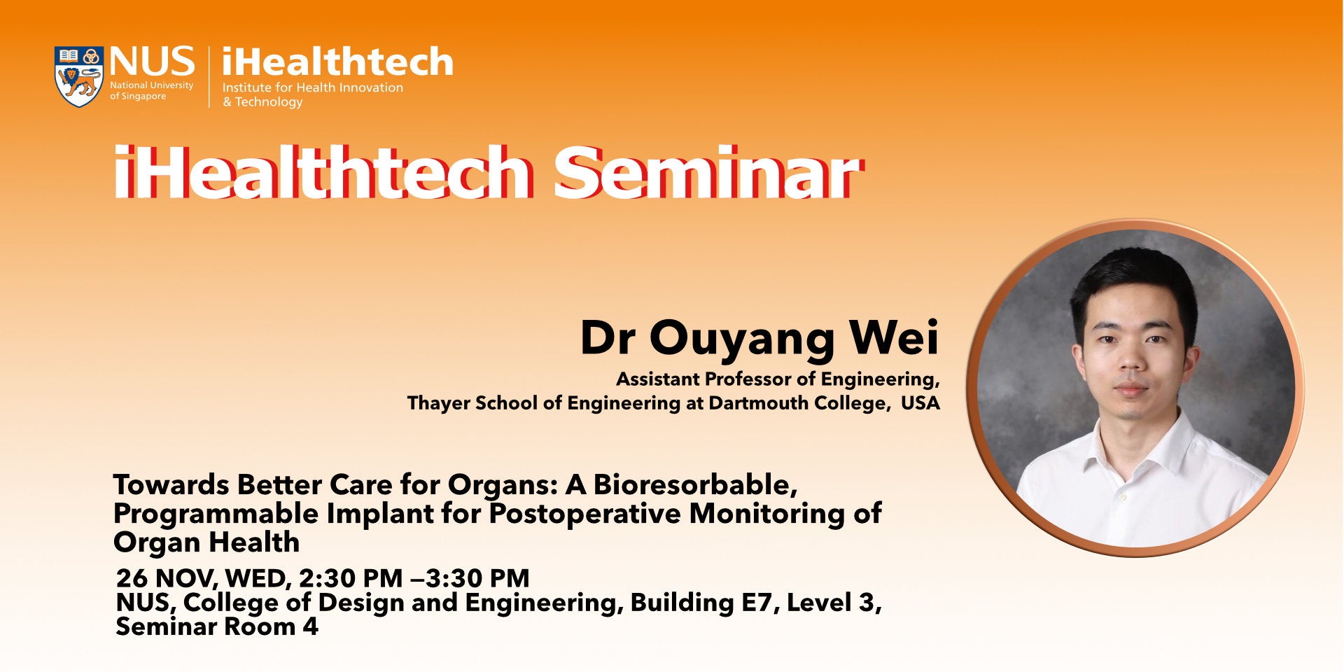 Dr. Wei Ouyang is an Assistant Professor of Engineering (ECE/BME) at the Thayer School of Engineering at Dartmouth College, where he leads the Bio-Integrated Microsystems Group. His research focuses on developing body-integrated biosensors and bioelectronic systems for precision healthcare. Prior to joining Dartmouth, Dr. Ouyang was a postdoctoral fellow with Prof. John A. Rogers at the Querrey Simpson Institute for Bioelectronics at Northwestern University. He received his BS in Microelectronics from Peking University and both his SM in Electrical Engineering and Computer Science and PhD in Electrical Engineering from the Massachusetts Institute of Technology (MIT), where he was advised by Prof. Jongyoon Han. His honors include the NIH Maximizing Investigators’Research Award (MIRA), the Dimitris N. Chorafas Foundation Prize, the Helen Carr Peake and William T. Peake Research Prize, the Ernst A. Guillemin Thesis Award, and recognition as a Siebel Scholar (Class of 2016).